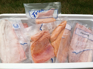 3) I cut the filets and package them into one-meal portions. Label and store fish for up to two-years in the vacuum-sealed pack!